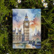 This postcard features a watercolor portrait of Big Ben in London, England.