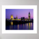 Poster shown with a white border and a photo print of a beautiful night in London showing big ben city scape.