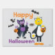 Wish everyone a "Happy Halloween" with this adorable Sesame Street design featuring Count von Count and Big Bird dressed up for the spooky season! Count von Count is in his element as a friendly vampire, while Big Bird embraces his inner feline, donning a cute cat costume complete with ears and a fluffy tail. Surrounded by playful bats and a dangling spider, this delightful illustration brings a fun and festive vibe to Halloween celebrations.