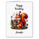Personalized super big birthday card with coloring page. Adorable squirrel in birthday hat holding a gift personalized birthday card.