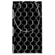 This gift bag has an art deco design of white half circles connect with lines on a field of black.