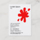 A business card design with a bold ink blot motif sure to grab attention. Company details on the front with name, title and other contact details on the back with a smaller blot motif