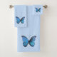 Beautiful big blue Morpho butterfly on light blue Bath Towel Set. Elegant beautiful Bath Towels.