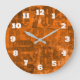 Big Bold Numbers on Brownish Orange Grunge Texture Large Clock