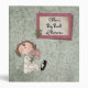 Cute little girl holding flowers on a background of vintage pink and green buds. She's all dressed up in her black buckle shoes and a ribbon in her hair. Name can be customized. On the back is a coordinating design saying "The End". Perfect for a baby shower gift, birthday gift, gift for a new mom, or for the Christmas holidays. You can also use it to showcase your child's art projects and school photos!
