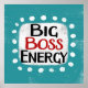 "Big Boss Energy" is a cute text design in blue with black and red text, along with a white accent shape and white textured whimsical dots surrounding it.
