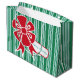A big red bow decorates this aqua and green striped holiday gift bag. This bag is great for all ages. The design is from original art.