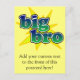 Celebrate the big brother with this fresh gear. Yellow and blue with "big bro", and a comic-book style burst make this a nice addition to the little boy's collection. Great for the arrival of a new sibling, at the baby shower or anytime! Use "customize it" to personalize any design!