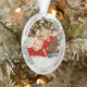 The ornament in oval shape has a classic silver frame adorned with Christmas plants and ribbon to display your own special memory of your kids. The bright and shiny silver border encircles your photos. The holly, greenery and silk ribbon complete the whole design with a joyful atmosphere of the holiday season. On the back side, the heartwarming quote on the edge of the frame expresses how important the sibling relationship is. Easily place your own memorable photo in place of the template photo as well as the name and year to make your own ones, and send it to your family and friends to celebrate the Christmas.