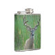 Big whitetail buck shows off wide set of antlers, on classic flask. Ideal for groomsmen, outdoors or party favors.