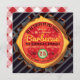This fun bbq invitation features a big hamburger with the word "Barbecue" done in mustard on a sizzling hot grill with all the fixin's. The back has a Gingham pattern.