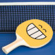 This table tennis bat has a funny face on it with a big cheesy grin. It is one of a variety of happy face table tennis rackets that you can buy from Superkalifragilistic.