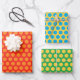 Fun, retro polka dot gift wrap! A set of three wrapping paper sheets, perfect for birthdays, anniversaries, housewarmings, kids' gifts, and more. Printed colors: red, orange, blue, green and yellow.