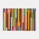 This doormat has a geometric design of colorful stripes running vertically.