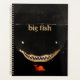 This black-dominant design has an illustration of a big scary shark illustration which follows a little red fish. You can customize the default "big fish" text.
