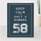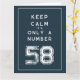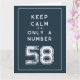 Big distressed keep calm text 58th Birthday card. Fun Keep Calm and Carry On quote for 58 year old. Make your own age specific spoof with custom age number. Cool greeting card idea for men or women. Rustic vintage typography template. Custom color background. Personalize with message inside. Oversized card design.