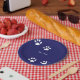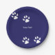 Why not add a touch of fun to your party and start with this blue paw print plate. The strong blue color will stand out on a white table cloth and the prints are a sharp and clear design. You could have a blue and white dog party theme and create something a little different! You can also alter the white footprints to another bespoke color just click on the edit design link and choose a background color from the left.