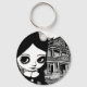 Big eye Goth girl Haunted house Original fantasy dark art ink illustration Round keychain