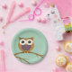 Big Eyed Owl on Branch with Full Moon Paper Plates