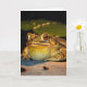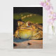 Close up macro photo of a big fat green and yellow Toad on a toadstool in a pond about to croak