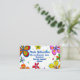 Big flowers floral artwork business card. Bright and funky floral art design done in colored pencil, borders 5 template text lines to use for customizing. Original illustration.