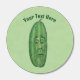 These stickers for candy mints or chocolates have a big green pickle with a stem that has a surprised looking face on a light green background. Customise your text with the template.