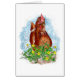 Big Personalized Happy Birthday card. A chicken sitting in clover and flowers hand drawn sketch. Cute gift for your favorite chicken mom.