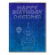Go Big With This Very Large Happy Birthday Card. Wonderful card with blue print engineering or architect design featuring happy birthday balloon, monogram name and a robot sketch Great way to send a big message for a very special birthday such as turning 21, 16th, over the hill, 50,60,70,80,90 and older. Perfect large birthday card for the office,charity groups,teams,organizations,business offices and families. Happy Birthday to you!