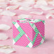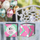 2 inch square party favor box with a lady in her Derby hat on the top with your message against a background of hot pink, green and white diagonal blocks of stripes. A fun way to thank guests for coming to your Derby themed bridal shower or change the wording and use for a birthday party or any occasion. All wording can be changed and lady image can be deleted, click CUSTOMIZE button. MATCHING items in our store.