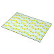 Big head chick on blue cloth placemat