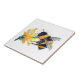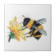 traditional watercolor artwork of a big honey bee collecting pollen from a yellow flower on a ceramic tile