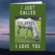 Birthday card with a funny horse message! I just called big horse (because) I love you. Image is a photograph of a white horse grazing in a field.