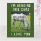 Birthday card with a funny horse message! I'm sending this card big horse (because) I love you. Image is a photograph of a white horse grazing in a field.