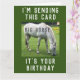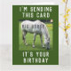 Birthday card with a funny horse message! I'm sending this card big horse (because) Its your birthday. Image is a photograph of a white horse grazing in a field.