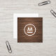 Big Initial Modern Monogram on Brown Wood Square Business Card