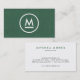 Big Initial Modern Monogram on Green Linen Business Card