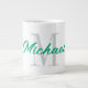 Big jumbo mug gift with custom name monogram. Personalized coffee cup for teach, tutor, coach, educator, wife, girlfriend, boyfriend, coworker, colleague, employee, school teacher, friend, mom, dad, husband, sister, aunt, uncle, grandma, grandpa, boss etc. Enormous size drinkware design for men, women and kids. Super XL oversized mugs for home or office. Also great as Birthday party present or thank you favor. Glamorous design with stylish script lettering.