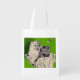 I own a lot of reusable grocery bags, but this one holds its box shape and simply stands up on its own even if there is nothing in it. Its stiffer than your regular reusable bag too, and the material is water resistant. I poured water on the exterior and it didn't penetrate inside to the other side. I'm buying a couple more. Wish I knew how durable these bags were or I would have purchased a few more with my initial order. I also like how it folds and buttons up when not in use, making it easy to put into a handbag or luggage. I haven't used this bag yet, as I purchased it for travel use, like when you're at the airport and need to small sturdy bag to place any airport purchases in, like food, souvenirs etc. I can tell you when you first see this bag, it looks very cheap, but after closer inspection of the material and the seams its a very sturdy reusable bag. I tested it out by putting some really heavy objects inside and I could not observe any stress to the bag at all. Another thing I like about it, is the fact the medium size that this is makes it easy to just carry it in your hand without the bottom of the bag scraping the ground, like most other bags do when you're short. That alone, deserves 5 stars. I just wish there were more colors to choose from! The PDX Airport Carpet printing looks just like the photo, and using this bag during travel might be a conversation piece when/if a native from Oregon happens to see it.