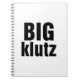 Funny text sayings T-shirts, mugs, buttons, bags, cards, stickers, key chains, magnets, notebooks, keepsakes, bibs, and much more with white or black text that reads Big Klutz. You can change the background color to whatever color you prefer to customize these products.