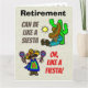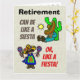 This card is a little bit big so that you have enough room for everyone in the family; or, in the office or company to sign it. Rather annoying when you have to sign a card for someone and there's no room, right? This card has a humorous Mexican or Hispanic theme to it, and can be for someone who is Hispanic that's retiring. Or, just anyone who is retiring because it's rather funny and light. If this is from ONE person, then I have the option of removing the closing "From Us All" on this card. Want it bigger or smaller? You can buy this in any size needed. Designed by Sheila Cicchi, Brownielocks.com, All Rights Reserved.