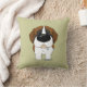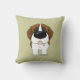 Cute big nose St. Bernard featured on a khaki colored throw pillow.