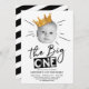 Big One First Birthday Modern Photo Black White Invitation