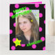 This fun big or large birthday card is great for women or for teens or for girls. The big card features a photo of the birthday gal as the focal point. The picture is surrounded by a black and hot pink polka dot frame with the words "HAPPY BIRTHDAY" written in bright green at the top left and the name of the birthday gal at the bottom right. A yellow star appears on the bottom left with your custom age in it. This is a cute large birthday card which can be changed to any age to make a great big polka dots birthday card for her with photo. Copyright Kathy Henis