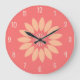 Big Peach Flower on Coral Large Clock