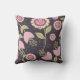 Big floral pattern with pink tulips and plants on a dark leaf patterned background.