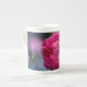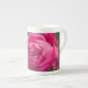 Elegant Bone China Mug featuring a photo of beautiful pink rose on dark green background. Pink rose symbolizes gentle love, affection, and appreciation. A glamorous romantic accent to your kitchen, a stylish gift for any special occasion (Saint Valentine's Day, Mother's day, Grandparents Day, birthday).