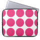 Cute and trendy Big Polka Dots Laptop Sleeve. This design features over-sized big circle polka dots in pink and white. Text can be added to this design to give it a personal touch.
