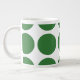 Cute and trendy Big Polka Dots Jumbo Mug. This design features over-sized big circle polka dots in green and white. Text can be added to this design to give it a personal touch.