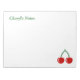 Big red cherries writing note pads with custom name. Cute memo pad stationery design for personal use, company, elementary school / kindergarten teacher Personalized writing accessories and stationary supplies for school or company office. Small and large sizes.