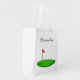 Big reusable grocery bag for golfer. Personalize with your own text. Great for home, party, event and more. Putting green drawing with flag and ball.